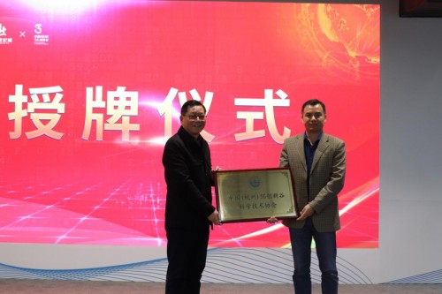 恒領科技董事長黃迎勝為5G創(chuàng)新谷科協(xié)授牌。