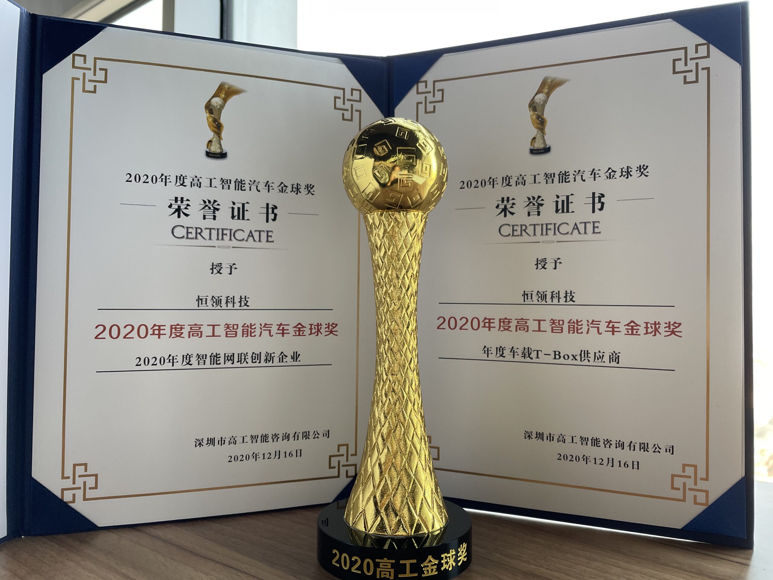 恒領(lǐng)繼2019年度獲“年度T-box供應(yīng)商”之后,今年再次在數(shù)百家參選企業(yè)里脫穎而出,一舉斬獲“2020年度高工智能汽車金球獎—— 2020年度智能網(wǎng)聯(lián)創(chuàng)新企業(yè)、年度車載T-Box供應(yīng)商”兩項獎項。